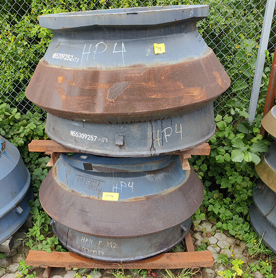 Společnost SCP prodává opotřebitelné a náhradní díly pro kuželové drtiče Metso* HP4. Naše opotřebitelné díly pro drtiče jsou vyráběny s různým obsahem manganu, aby se maximalizoval výkon a životnost vašeho kuželového drtiče.